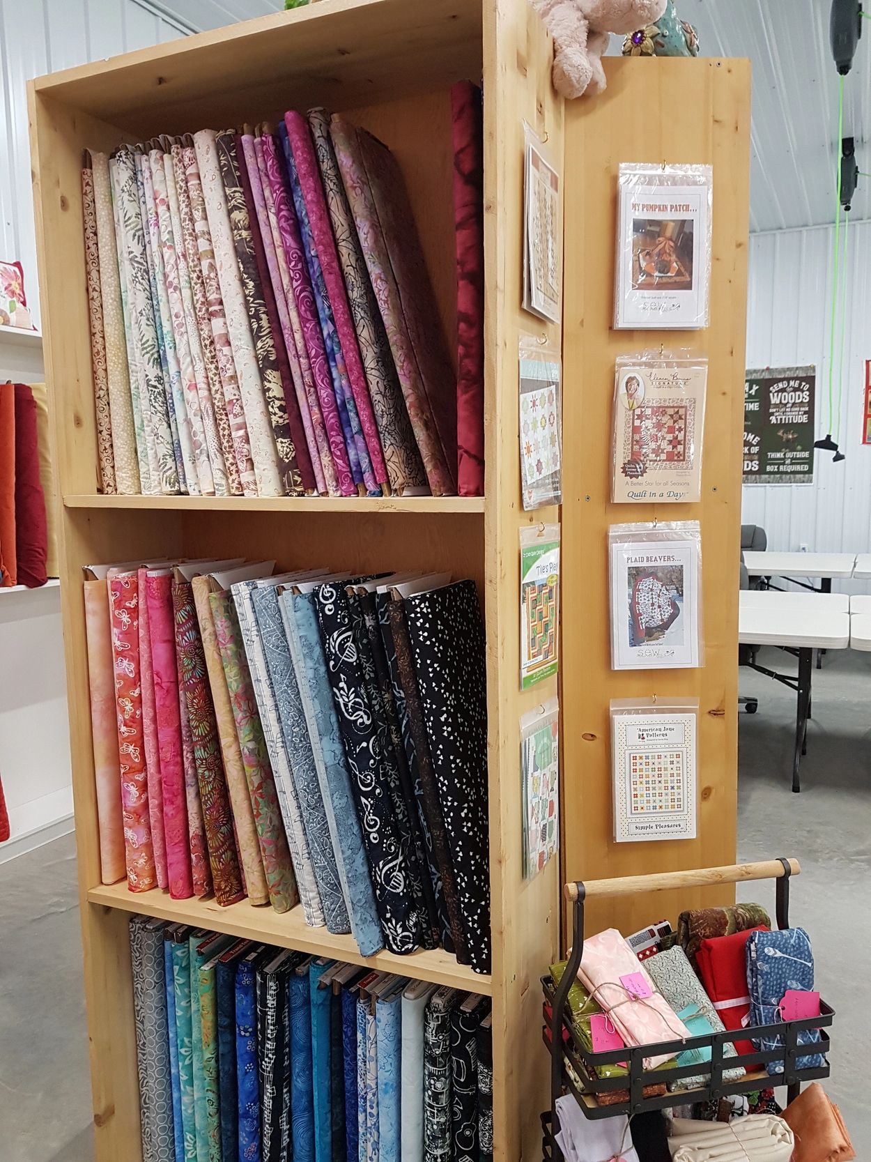 An assortment of notions, panels, books and patterns!